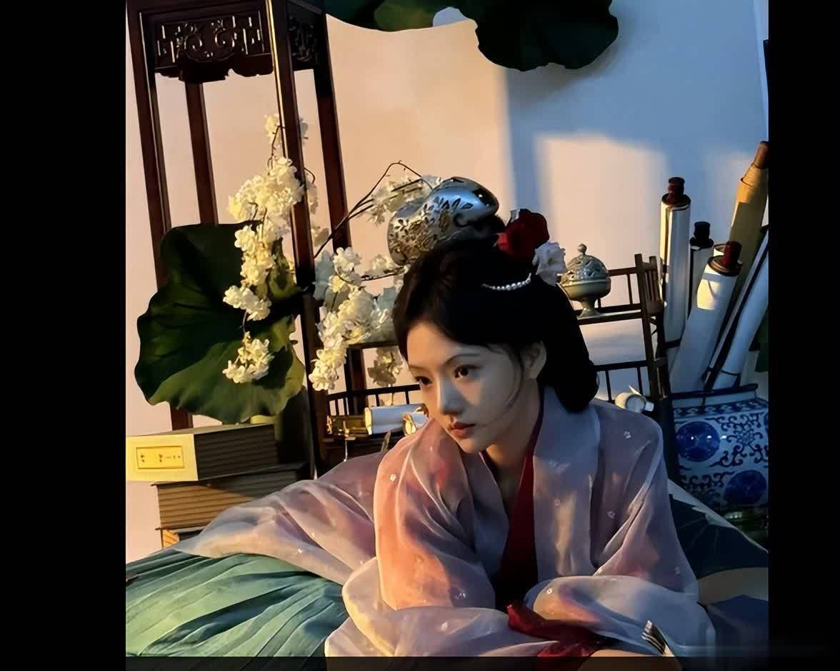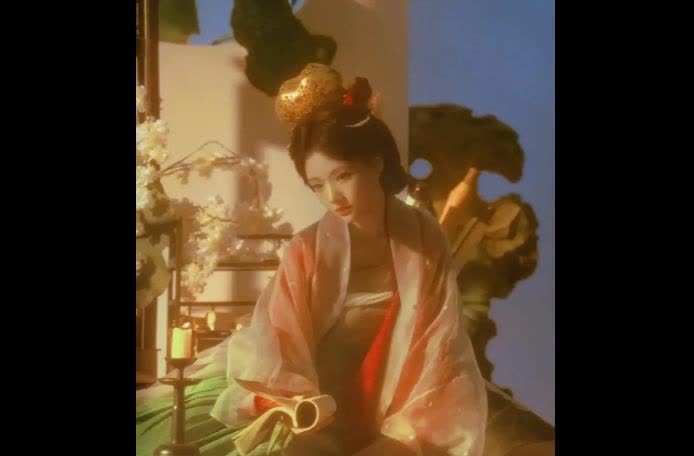 任敏清冷古风出镜,粉衣簪花美感十足!